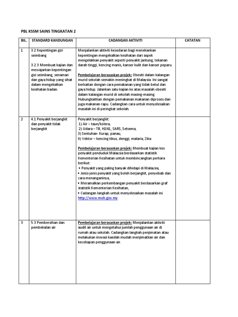 Bagi DSKP KSSM Sains Tingkatan 5 ada tugasan Pembelajaran Berasaskan Projek PBL bagi Topik Sebatian Karbon. Untuk memandu pembelajaran ini guru dapat mendisain instrumen-instrumen lembar kerja peserta didik karena pelaksanaan. KOMPILASI PBL PROJECT-BASED LEARNING DAN PROJEK MUDAH VERSI PKP 2 Penerbit Sektor Pembelajaran Jabatan Pendidikan Negeri Sabah Level 5 Wisma Jabatan Pendidikan Negeri Sabah Jalan Punai Tanah 88450 Likas Kota Kinabalu Sabah Penerbit Jabatan Pendidikan Negeri Sabah 2020 Cetakan pertama April 2020.